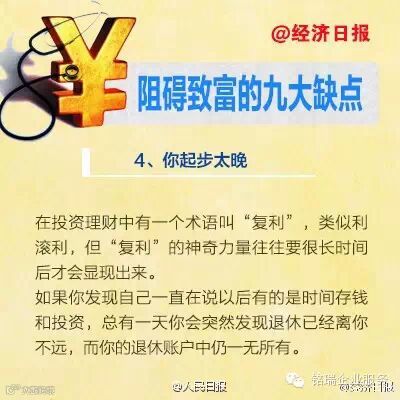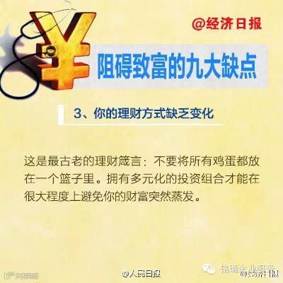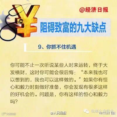 广州诚丰信企业服务有限公司很多人认为他们富不起来是因为自己挣的钱太少。事实上,致富与你能挣多少钱之间没有太大的关系。你为什么富不起来?以下九个缺点,可能是你在发财致富的过程中最常出现的↓↓↓