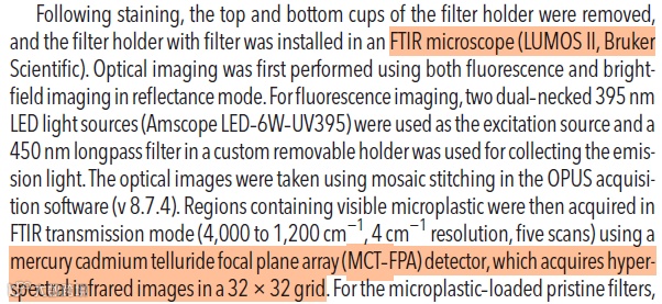 复杂样品处理能力: 该技术既能分析沉积在洁净滤膜上的人造微塑料样品,也能挑战更具现实意义的、包含大量外源背景物质(如河床沉积物分离后的残留物)的 “高背景”样本。这充分证明了布鲁克面阵列红外成像系统在复杂基质中获取微塑料高质量可靠光谱信号的能力。