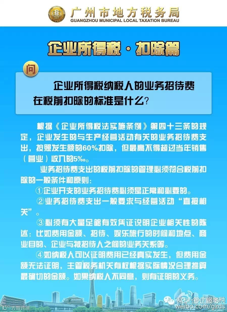 企业发生的与生产经营活动有关的业务招待费支出,按照发生额的60%扣除,但最高不得超过当年销售(营业)收入的5‰。同时,业务招待费支出的税前扣除的管理必须符合税前扣除的一般条件和原则。