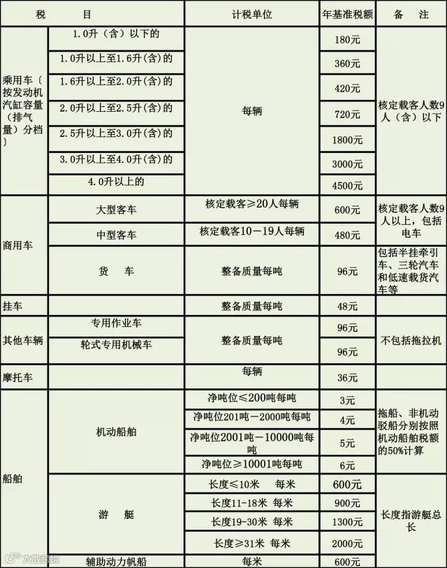 根据《中华人民共和国车船税法》所附《车船税税目税额表》,按照乘用车依排气量从小到大递增税额原则确定我省乘用车税额;按核定载客人数20人以下和20人(含)以上两档划分,递增税额的原则确定商用车客车税额;按照扶持行业发展和关注民生原则,合理确定商用车货车、挂车、其他车辆专用作业车、其他车辆轮式专用机械车和摩托车的税额。我省车辆车船税的具体适用税额见附件。