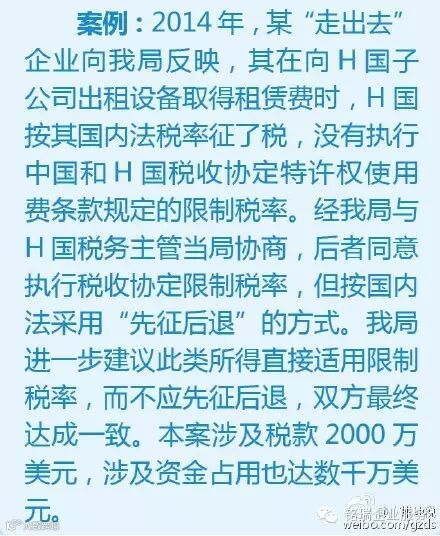 近年来在谈签新的税收协定或修订旧的税收协定时,我国通常会争取在议定书中明确“直接适用限制税率而不是先征后退”,从而减少“走出去”企业的资金占用,降低纳税成本。