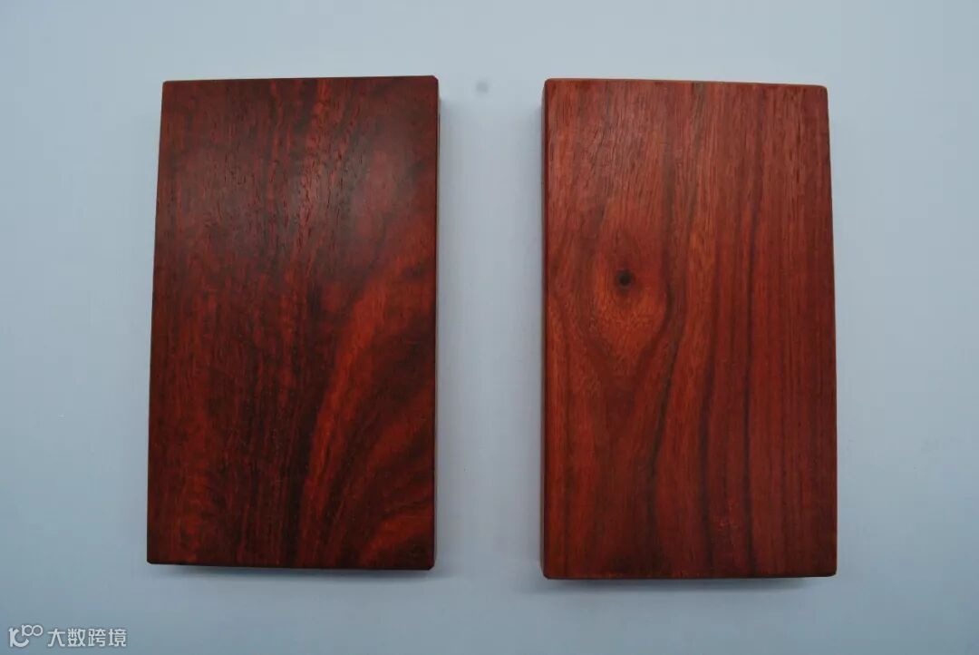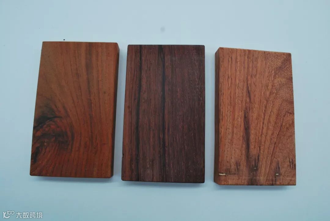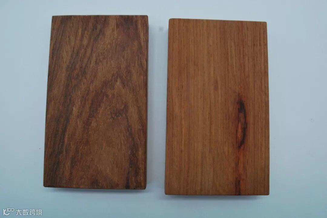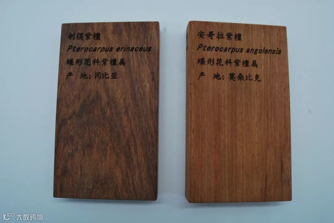 上二图:木材样品中刺猬紫檀与安哥拉紫檀的样品对比