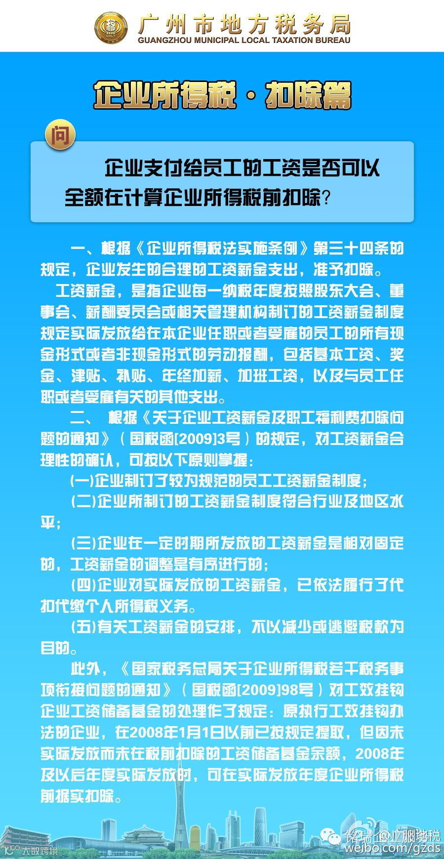广州诚丰信企业服务有限公司企业发生的合理的工资薪金支出,准予扣除。实际发放给在本企业任职或者受雇的员工的所有现金形式或者非现金形式的劳动报酬,包括基本工资、奖金、津贴、补贴、年终加薪、加班工资,以及与员工任职或者受雇有关的其他支出。