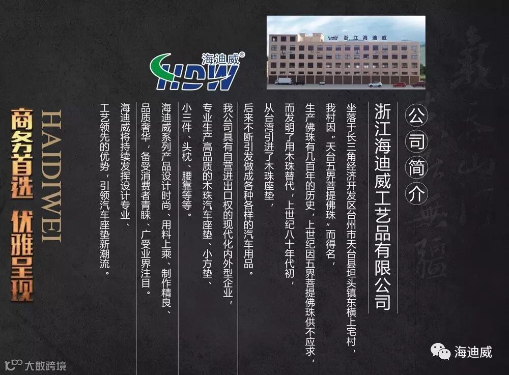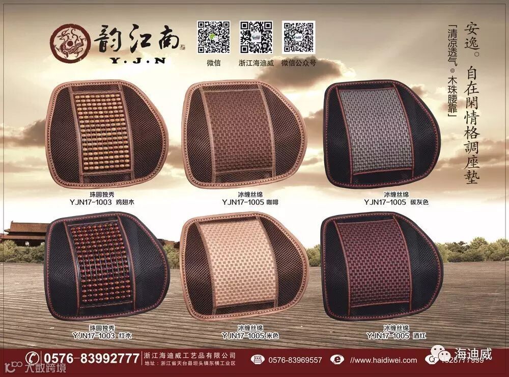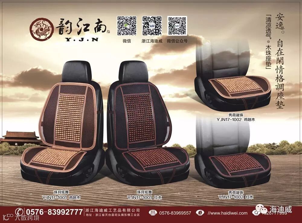我公司致力于研发生产销售海迪威高端木珠座垫系列产品,主要由中高档木珠汽车座垫、木珠头枕、木珠腰靠、及各种四季垫等产品,产品主要以设计新颖高端为主,深受广大用户好评!海迪威宗旨-您的满意才是我们的骄傲!!!