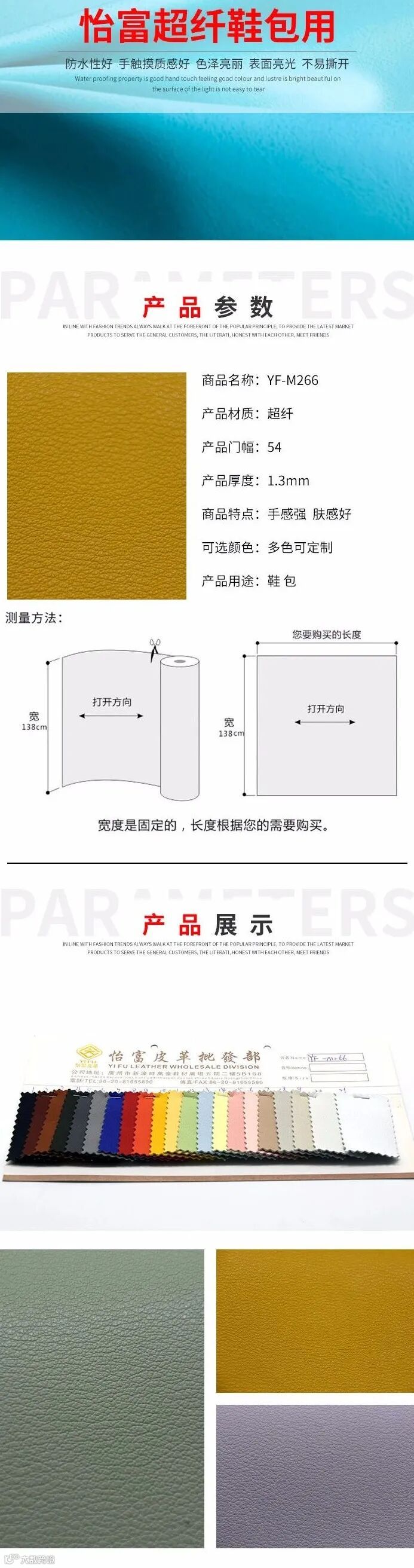 怡富超纤鞋包用1.3mm厚度YF-M266超纤 |