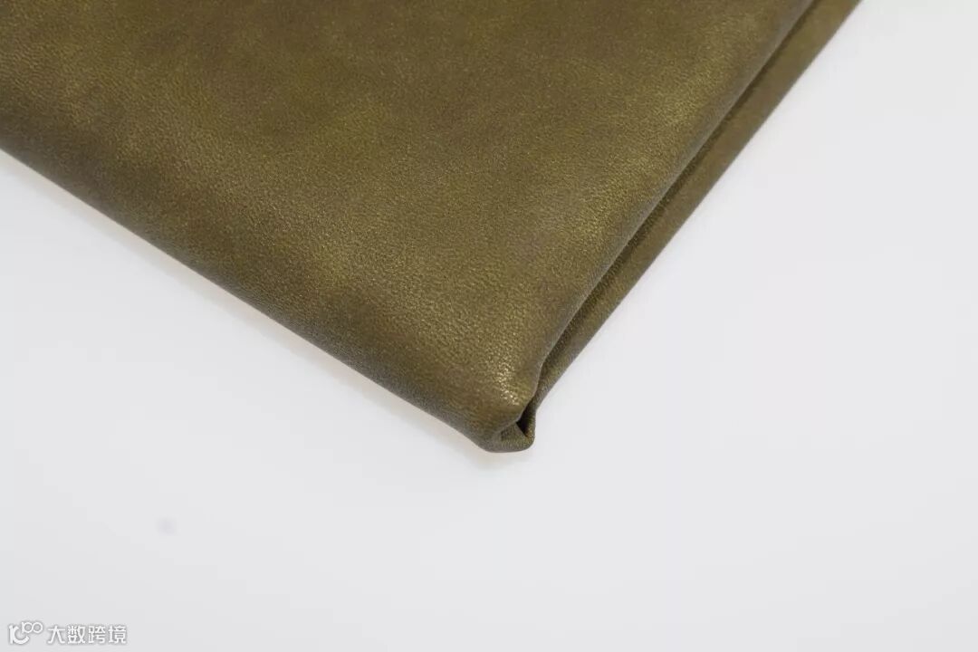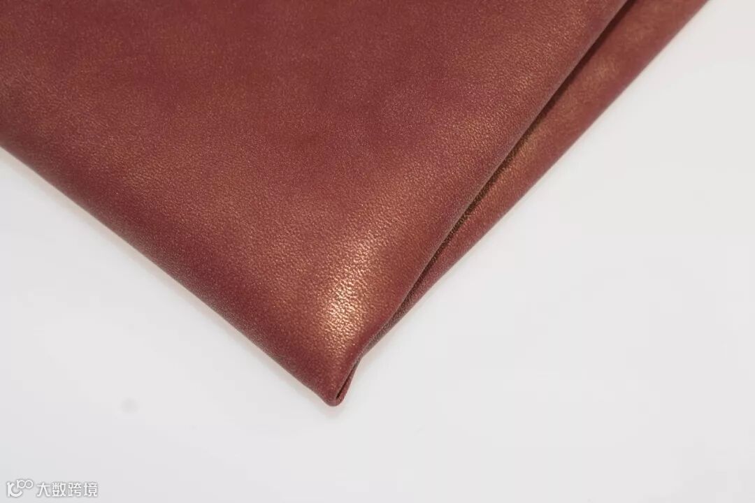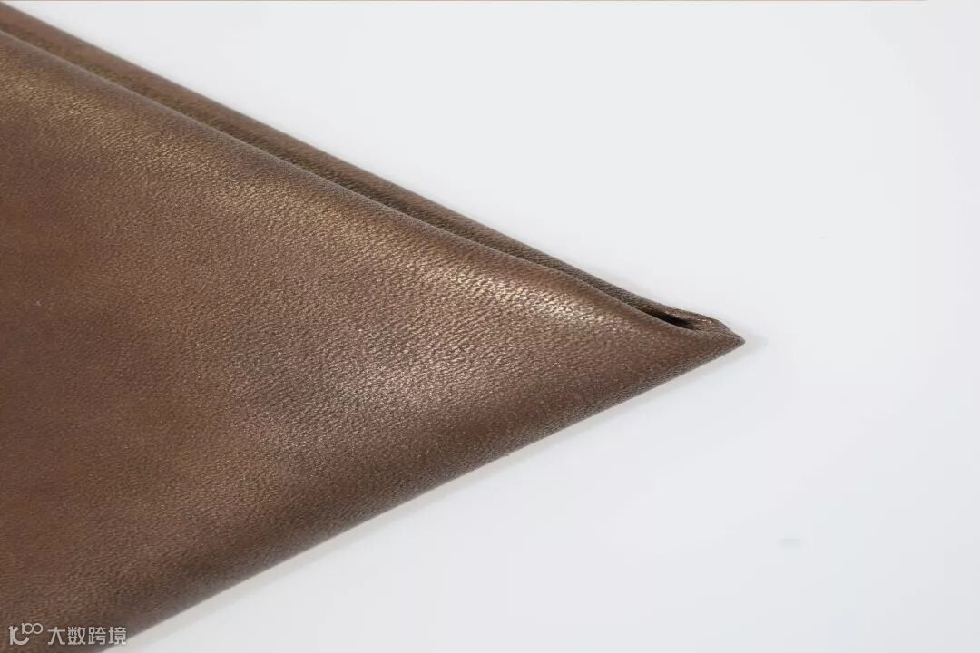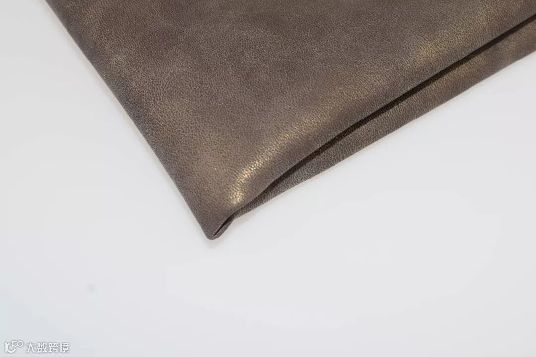 高固羊巴效果,表面不仅有双色,还有丰富的层次感,表面羊巴颗粒感细腻自然,沟底带有金属光泽,皮质柔软、Q弹。整体色水比较复古,隐约的金属光泽又透着华丽,极具怀旧感。 欧 标环保,剥离强度 6KG以上,常温耐折次数可达 6万次以上,可放心使用。