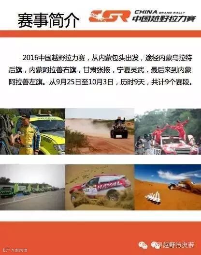 中国越野拉力赛,作为中国首个自主知识产权品牌的长距离越野赛事,是目前中国境内越野赛事中路线最长、穿越省份最多、比赛环境最艰苦、赛段难度最高的越野拉力赛事,自正式开赛以来得到了国内外各界人士的广泛关注与支持。