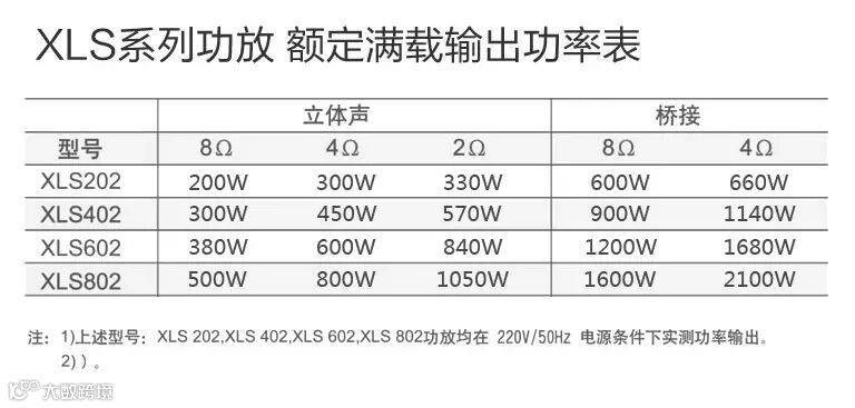 XLS802D满载输出功率表: