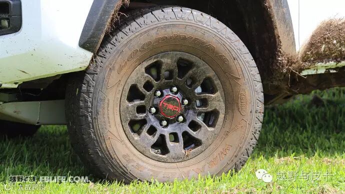 新车最重要的变化就在于悬架部分,其中最为出众的当属Fox 2.5内置避震器,其专门配有属于TRD的调校,在多变的路况上依旧能保持足够的支持。除了够稳,Tacoma TRD Pro还足够舒适,同时也少不了给驾驶员反馈路面的情况。当然还有底盘上的其它调整,包括TRD前悬弹簧有大约2.5厘米的抬升,专为越野路面调整的后钢板弹簧设定,独特的16寸黑色铝合金轮圈搭配P265/70R16固特异全地形轮胎,视觉效果相当不错。