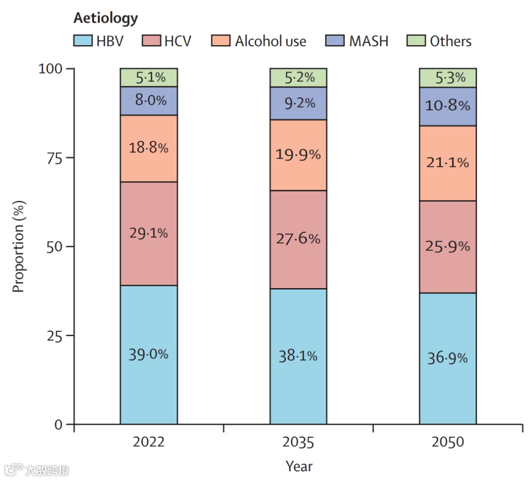 报告数据显示,虽然乙肝、丙肝病毒相关肝癌比例将略有下降(从39%、29.1%分别降至36.9%、25.9%),但酒精和MASH(代谢功能障碍相关脂肪性肝炎)导致的肝癌比例将显著上升。全球约1/3人口患有MASLD,受肥胖率攀升影响,预计到2050年MASH相关肝癌病例将增加35%。这种演变,意味着肝癌防控需从传统的病毒防控向综合健康管理拓展。