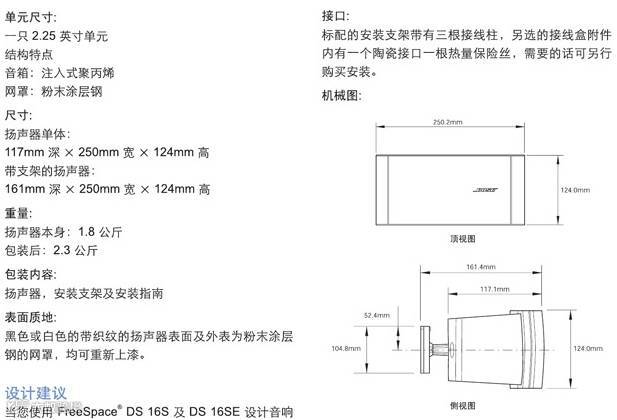 FreeSpace DS 16S/DS 16SE 扬声器(带墙架) Bose FreeSpace DS 16S及DS 16SE扬声器是两款高性能的墙面安装扬声器,专为广泛的商业应用而设,适合用于零售店、餐馆、酒店等场合的背景音乐播放及语言扩声。