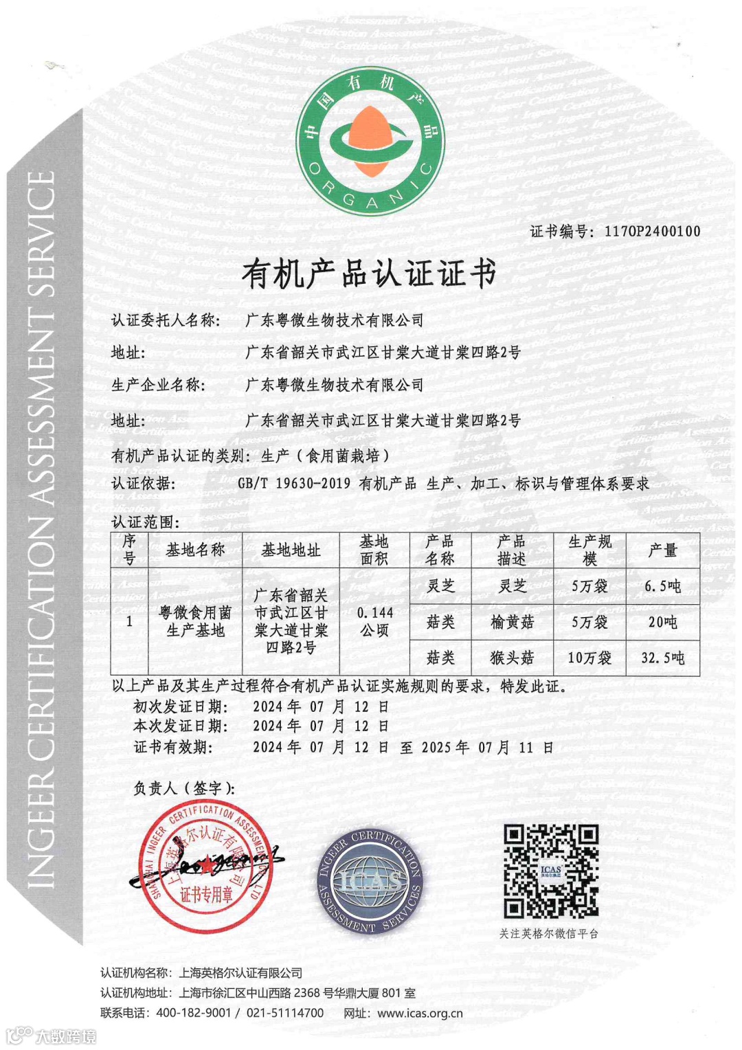 值得一提的是,粤微公司的猴头菇及猴头菇提取物获得了有机认证。这意味着粤微猴头菇从种植到加工,整个过程都严格遵循有机标准。在种植阶段,不使用化肥、农药、生长调节剂等化学合成物质,采用天然的肥料和物理、生物的防治方法来保证猴头菇的生长环境安全无污染;在加工环节,也杜绝了化学添加剂的使用,最大程度保留了猴头菇的天然营养成分,为消费者提供了绿色、健康、安全的产品。