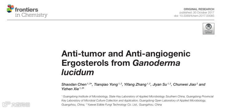 [2]Chen S ,Chen S ,Yong T , et al.Anti-tumor and Anti-angiogenic Ergosterols from Ganoderma lucidum[J].Frontiers in Chemistry,2017,585.