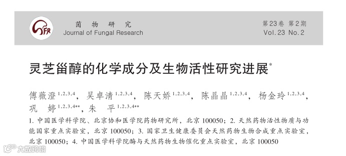 [1]傅薇澄,吴卓清,陈天娇,等.灵芝甾醇的化学成分及生物活性研究进展[J].菌物研究,2025,23(02):93-106.DOI:10.13341/j.jfr.2024.1827.