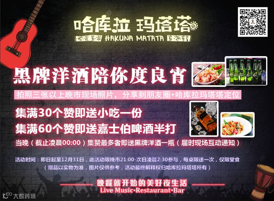拍三张以上晚市现场的照片,Share到朋友圈+哈库拉玛塔塔的定位