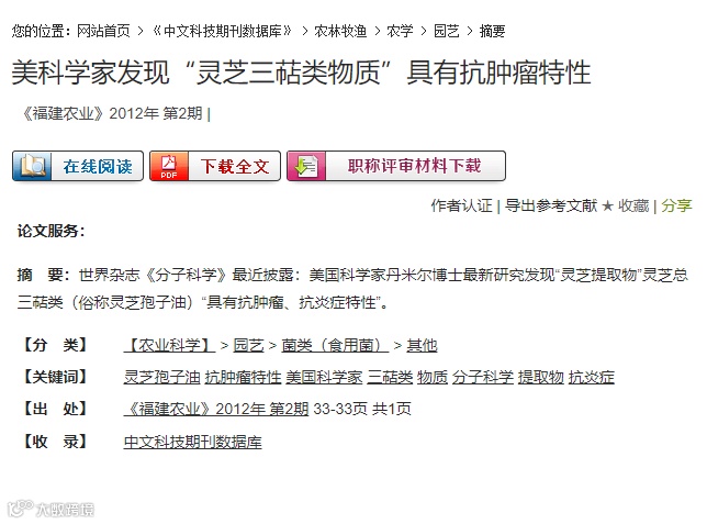 [9]吴亭瑶《健康灵芝》印度癌症研究中心证实:灵芝三萜可降低致癌风险.