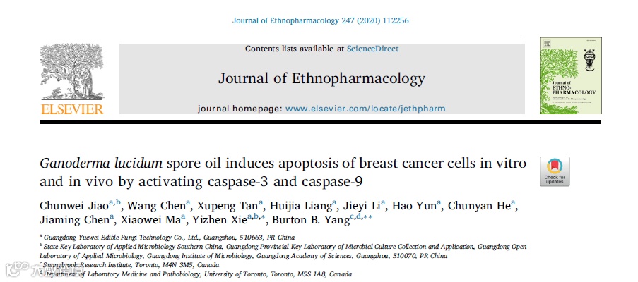 [10]Jiao C, Chen W, Tan X, Liang H, Li J, Yun H, He C, Chen J, Ma X, Xie Y, Yang BB. Ganoderma lucidum spore oil induces apoptosis of breast cancer cells in vitro and in vivo by activating caspase-3 and caspase-9. Journal of Ethnopharmacology.2020 Jan 30;247:112256.