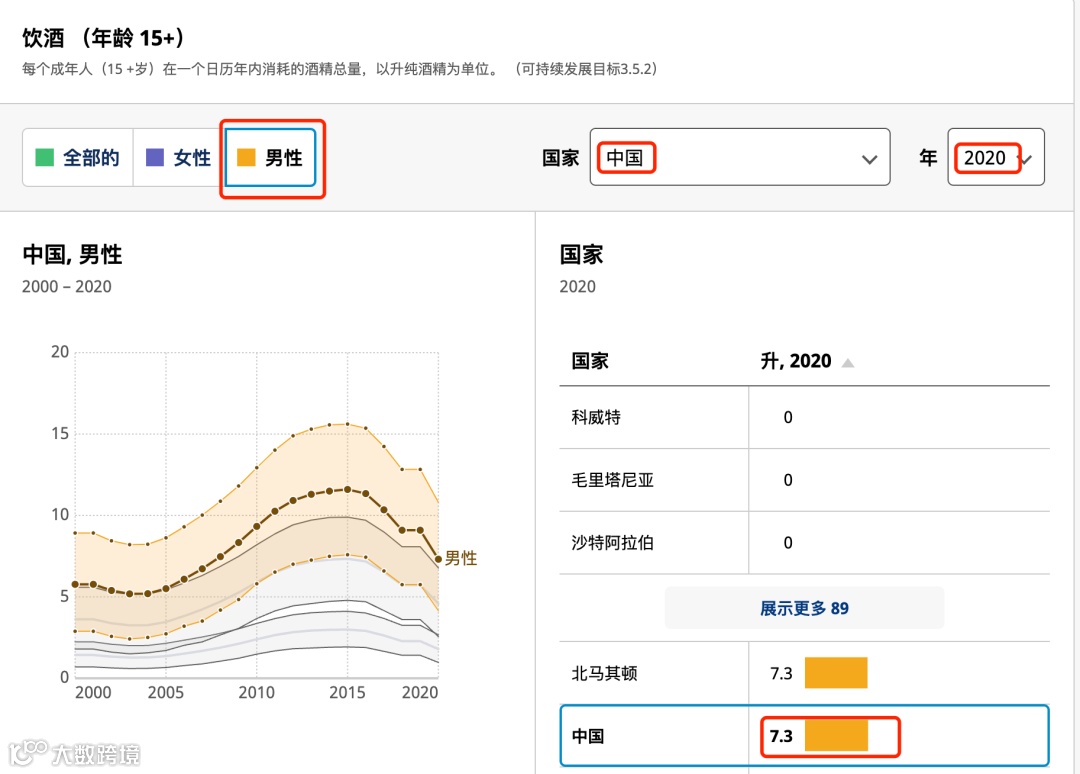 以饮酒为例,世界卫生组织(WHO)2020年数据显示,中国15岁及以上男性年平均酒精消费量高达7.3升,远超女性的1.8升。
