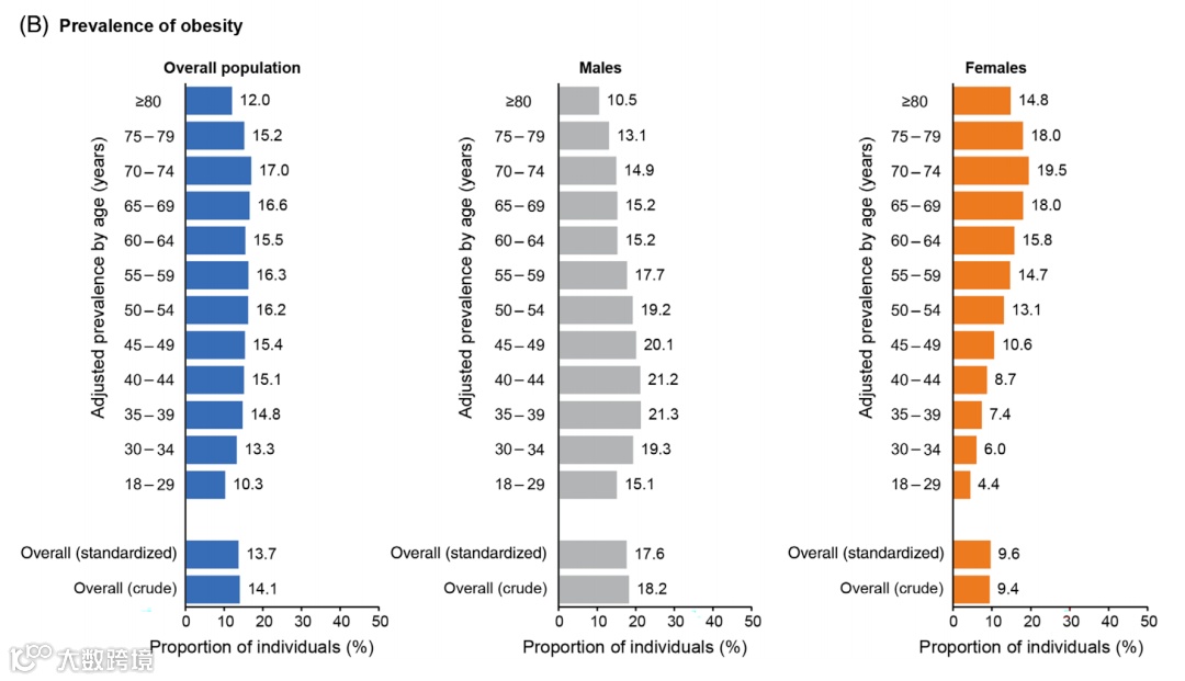 而在我国,男性超重及肥胖的比例显著高于女性。具体而言,男性超重率高达41.1%,女性为27.7%;而肥胖率方面,男性达到18.2%,女性仅为9.4%,在一定程度上亦加剧了男性高尿酸的发病率。