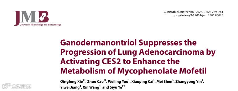 参考文献: [1]Xie Q ,Cao Z ,You W , et al.Ganodermanontriol Suppresses the Progression of Lung Adenocarcinoma by Activating CES2 to Enhance the Metabolism of Mycophenolate Mofetil.[J].Journal of microbiology and biotechnology,2024,34(2):249-261.