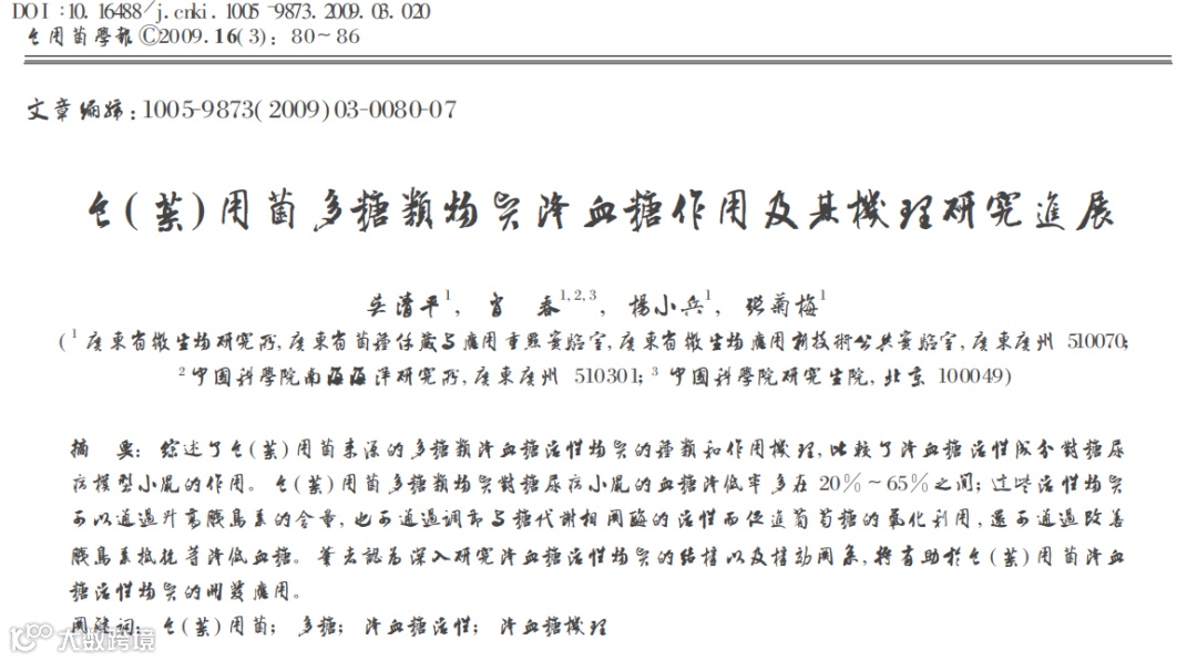该成果《食( 药) 用菌多糖类物质降血糖作用及其机理研究进展》发表于《食用菌学报》。对食(药)用菌多糖类物质(降血糖活性物)结构以及构效关系的深入研究,由此拉开帷幕。