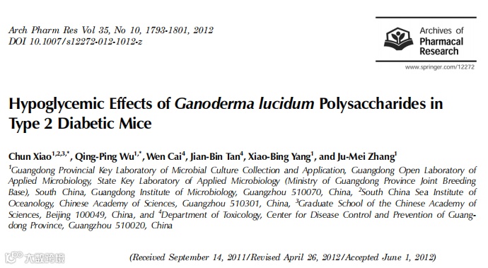[5]Chun Xiao,Qing-Ping Wu,Wen Cai,Jian-Bin Tan,Xiao-Bing Yang,Ju-Mei Zhang. Hypoglycemic effects of Ganoderma lucidum polysaccharides in type 2 diabetic mice[J]. Archives of Pharmacal Research,2012,35(10).