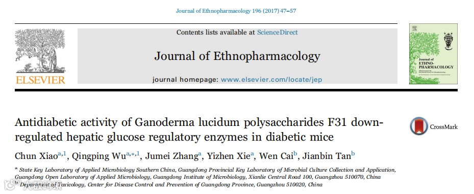 2017年,广东省科学院微生物研究所、广东粤微食用菌技术有限公司吴清平院士团队在权威国际期刊《Journal of Ethnopharmacology》(民族药理学杂志)发布重磅成果《Antidiabetic activity of Ganoderma lucidum polysaccharides F31 downregulated hepatic glucose regulatory enzymes in diabetic mice》(灵芝多糖F31降低糖尿病小鼠肝葡萄糖调节酶的抗糖尿病活性)。