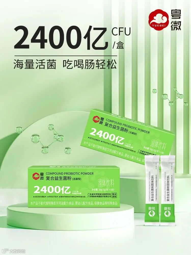 这里极力推荐博士科研团队研发的粤微复合益生菌粉,它满足好菌株(五种菌株,株株有编码,且通过菌种资源库平台分离、优化搭配和功能验证);活菌添加量高(每盒活菌添加量高达2400亿CFU)。