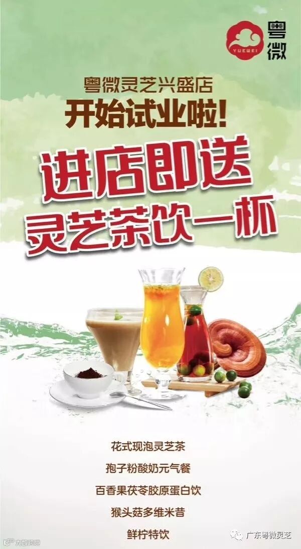 新店试业,灵芝茶饮天天送!
