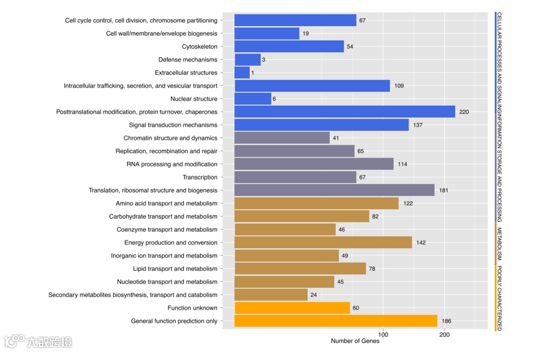 与KOG数据库的结果相比,灰肉红菇从eggNOG数据库中共注释了6140个基因。