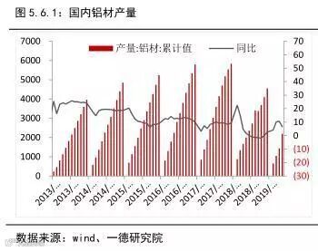 因此,由于全年GDP增速目标从6.7%降至6%,严峻的国内经济形势以及紧张的国际多边贸易环境使得生产制造业承压,增速出现较为明显的下滑。铝作为较为高端品种,消费依旧维持正增长,在国家的刺激政策下,维持相对乐观的态度