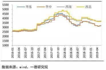 从下游消费量来看,国内2019年1-5月铝材累计产量2198万吨,同比增加6.5%,增幅较为明显,暂看远高于预期铝产业全年消费增速。环比看上半年铝材产量也处于上升阶段,虽广东市场普遍反映春节后当地建筑型材开工率不及往年,或因回款账期较长以及高压环保的因素,导致当地小型建筑型材加工企业订单被迫向大厂转移,小厂开工率出现较为明显的回落,大厂开工率维持较高运行水平,总体建筑型材水平相较往年处于弱势。北方地区工业型材受政策对特高压项目的刺激订单从2018年11月份开始明显增加,并且北方地区仍在积极投资建设下游加工厂。