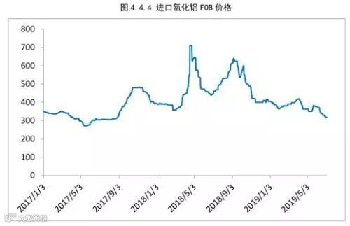 2018年上半年,电解铝供应及新增产能释放有限,且伴有采暖季限产,铝企因亏损而主动减产,产能置换转移提前停产现象。国内氧化铝供应面临过剩局面,随着海外阿联酋铝业及海德鲁铝业的复产,全球氧化铝均面临过剩局面,国内氧化铝出口量减少进口量激增,氧化铝价格长期围绕成本线2700元/吨窄幅波动。5月份山西地区突发赤泥污染事件遭到当地居民举报,氧化铝企业面临较大规模的停产改造,氧化铝价格在事件及资金的联合拉动下涨至高点3100元/吨。但实则氧化铝减产事件有限,且供大于求的局面未有实质性的改变,氧化铝价格在经历短期创高后迅速回落,目前已经降至2700元/吨,海外氧化铝价格从420美元/吨降至320美元/吨。2019年氧化铝全年供应过剩局面依旧,氧化铝价格维持围绕成本线的窄幅波动,唯有电解铝企业的利润空间放大方可拉动氧化铝价格的抬升,预计下半年波动区间为2500-2900元/吨。