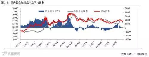 据国际铝业协会数据显示,今年 1-5 月全球氧化铝(包括中国)产量为5473万吨,同比增加390万吨,主要贡献源于中国地区,一方面中国全年预计新增产能400万吨,且采暖季期间同比去年限产即为有限;此外2019年海外氧化铝将面临较为集中的投复产情况,据统计全年海外氧化铝新增产能510万吨,复产产能150万吨。国内氧化铝供应情况从2018年的偏紧转为过剩局面,氧化铝出口窗口彻底关闭,进口量逐步增加,海内外氧化铝价格压力较大,在排除资金短期扰动的情况下,国内氧化铝价格或在成本线附近波动,预计波动区间2500-2900元/吨。
