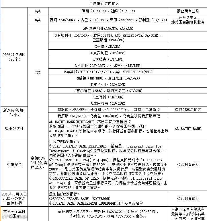 最后,附上中国银行最近美国监控地区名单,帮助各客户防范资金风险,保证