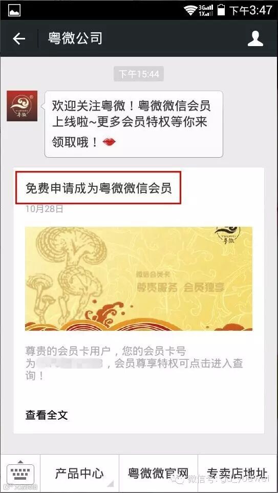 2、点击【微信会员】,获取《免费申请成为粤微微信会员》文章,并点开;