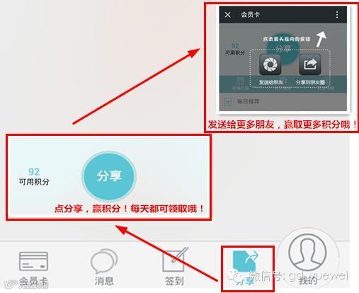 2、点击进入会员卡页面,如下图所示便可分享哦~(PS:每分享1次获2积分!)