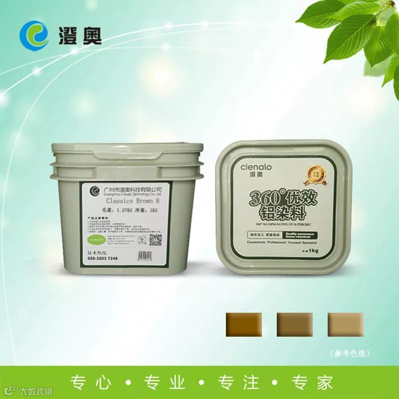 用途:适用于铝阳极氧化吸附染色的水溶性染料,产生偏橙的棕色色调,仅推荐用于室内,不建议使用打气及强烈过滤。