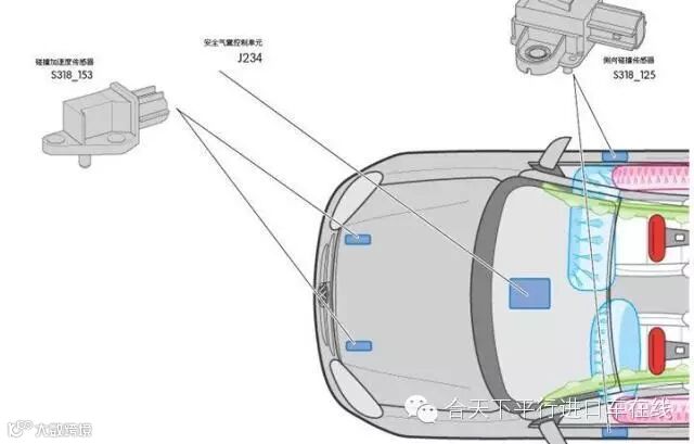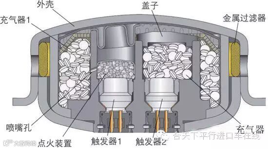 变化,并将碰撞信号传给气囊电脑,作为气囊电脑的触发信号;防护碰撞传感器也称为安全碰撞传感器,它与触发碰撞传感器串联,用于防止气囊误爆。