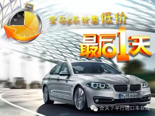导读:点击上方“公众号名称”可以免费订阅哦!买平行进口车,就选合天下!宝马525Li低价秒杀最后1天,快快行动吧