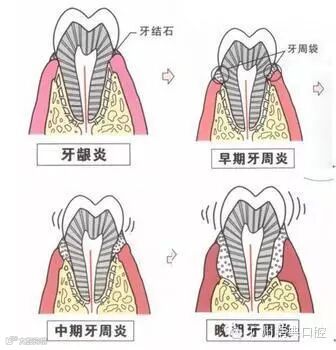 据精典口腔牙科联盟专家介绍,牙周病是支持牙齿的组织,如牙龈、牙槽骨、牙周韧带等感染而引起的疾病。不及时治疗,初期会引起牙龈出血及牙龈萎缩,后期导致牙骨吸收、牙齿松动、牙缝增大过度增生等症状,严重的可能会掉牙。有人可能会问,区区牙周病怎么会导致掉牙?专家解析,这是因为牙周病扩散到牙槽骨,而牙槽骨有支持牙齿的作用,有炎症不及时治疗就会导致牙齿松动甚至缺失。