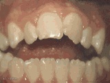 4、反合,俗称地包天,下前牙咬在上前牙的外面。