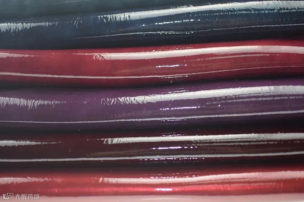 爆款皱漆,哈密瓜纹湿气固化,淋漆效果,表面有双色效果,部分颜色有珠光,晶莹剔透。欧标环保,剥离强度5KG以上,常温耐折次数可达2万次以上,不同批次颜色稳定性高,可放心使用。