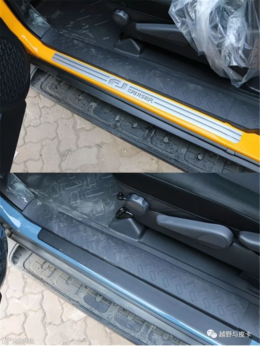 顶配车型的迎宾踏板看着更加高端上档次,上面印有 “FJ CRUSER ” 标志
