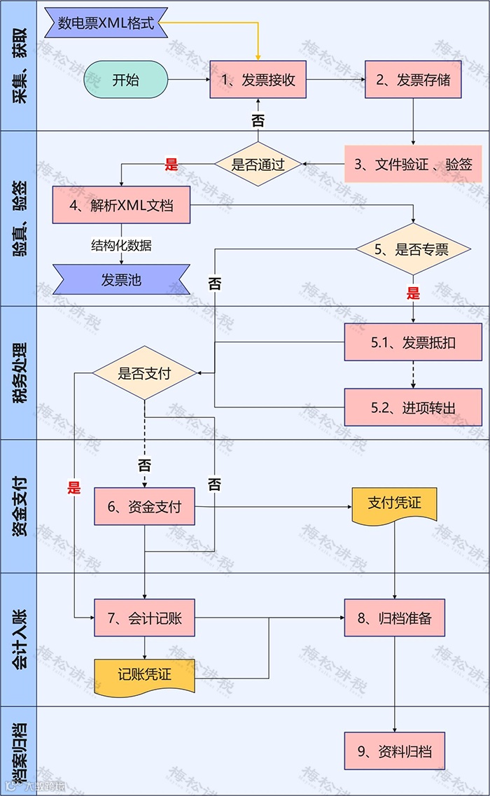 1. 电子发票、电子凭证的获取和存储:企业通过邮箱下载、税务局网站下载等渠道获取数电票数字签名的XML数据文件。