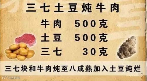 土豆500克、牛肉500克、三七30克。