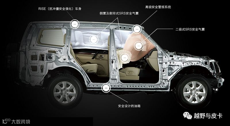 相比普通的承载式梯形框架车身,帕杰罗的车身强度是其四倍以上,负载弯曲强度、非水平扭动强度、横向弯曲强度以及水平菱形扭动强度指标也都不可同日而语。