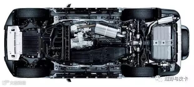 对于无大梁的说法,只能说第三代帕杰罗确实没有粗壮的独立大梁了。取而代之的是镶嵌进底盘的加强梁与梯形框架结构。