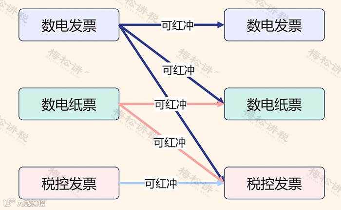 根据多地税务局的答疑情况来看,各票种之间的红冲规则为“新冲旧、电冲纸”,具体如下: