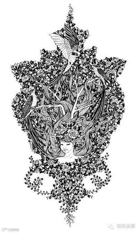 Sunny Gu非常擅长用黑白线条进行创作,看起来繁复却又非常严谨,同时她在上色方面也有自己的独特之处,灵动艳丽的色彩,让她笔下的美人、鲜花、高跟鞋与发饰都散发着少女梦幻般的魅力。
